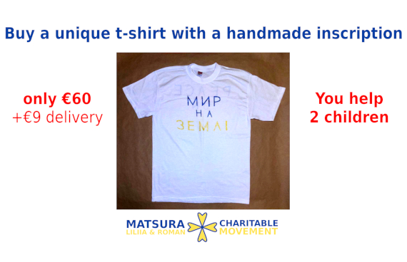 We started a unique campaign: "Buy a unique t-shirt with a handmade inscription and help 2 children affected by the war